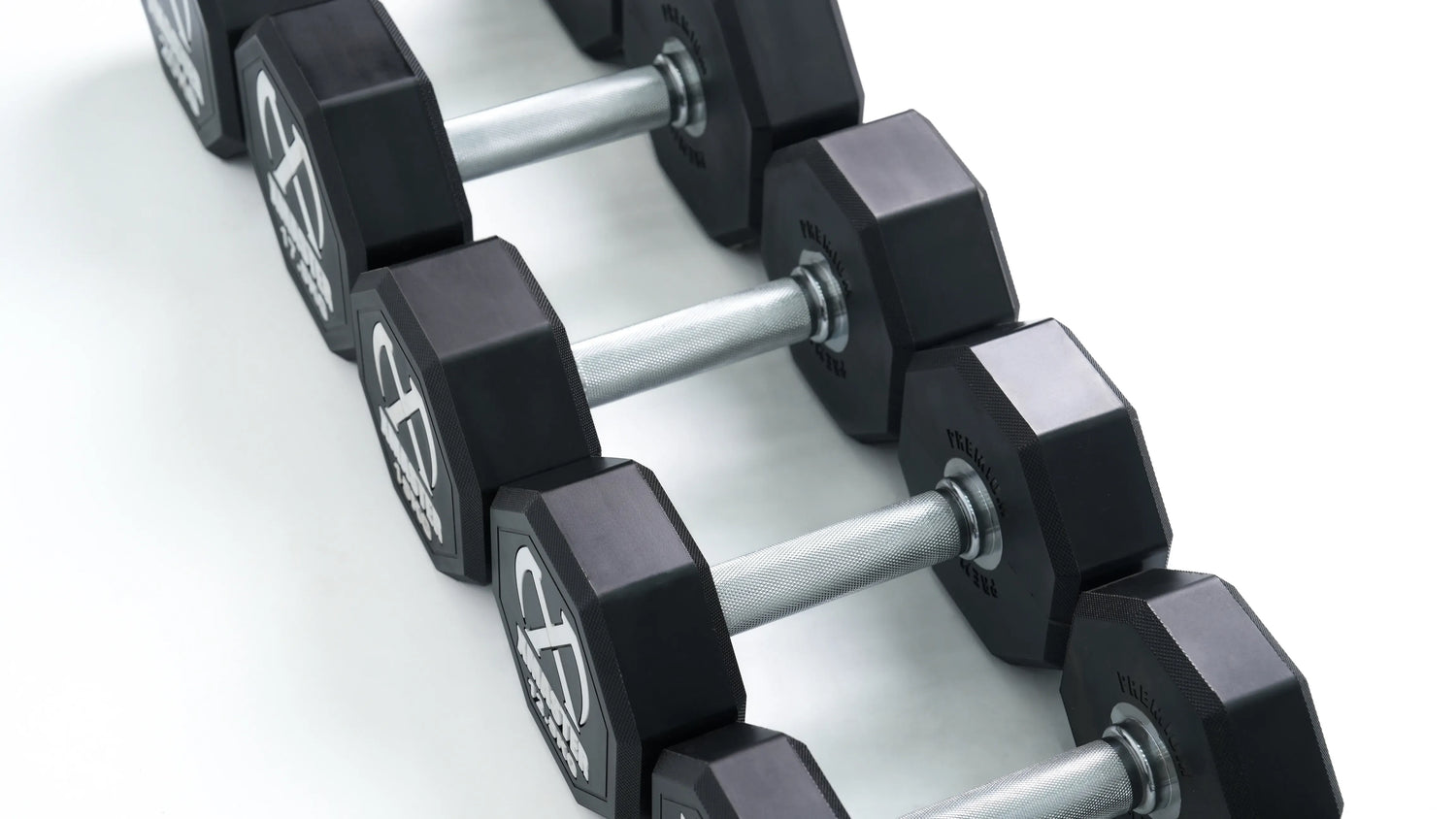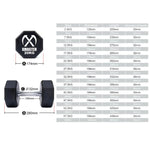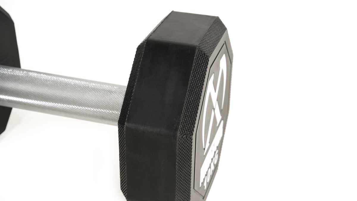 Le diamètre des têtes d'haltères varie de 127 mm (2,5 kg à 7,5 kg) à 50 mm pour les haltères de 204 kg et plus. Chaque modèle arbore une finition noire mate distinctive, des graduations nettes et précises ainsi que le logo Xmaster imprimé en blanc. Grâce à leur revêtement en polyuréthane et à leur texture, ces haltères conservent leur aspect neuf même après une utilisation prolongée, et nécessitent très peu d'entretien.